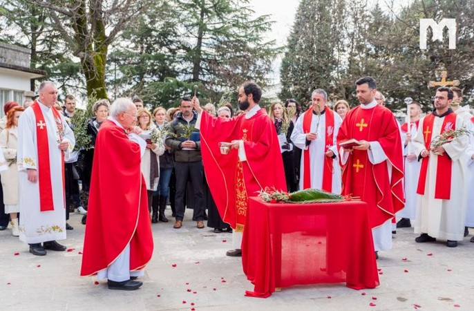 Obred blagoslova grančica bio je na temeljima stare crkve odakle su se u procesiji svećenici i vjernici s maslinovim grančicama uputili u međugorsku crkvu.
